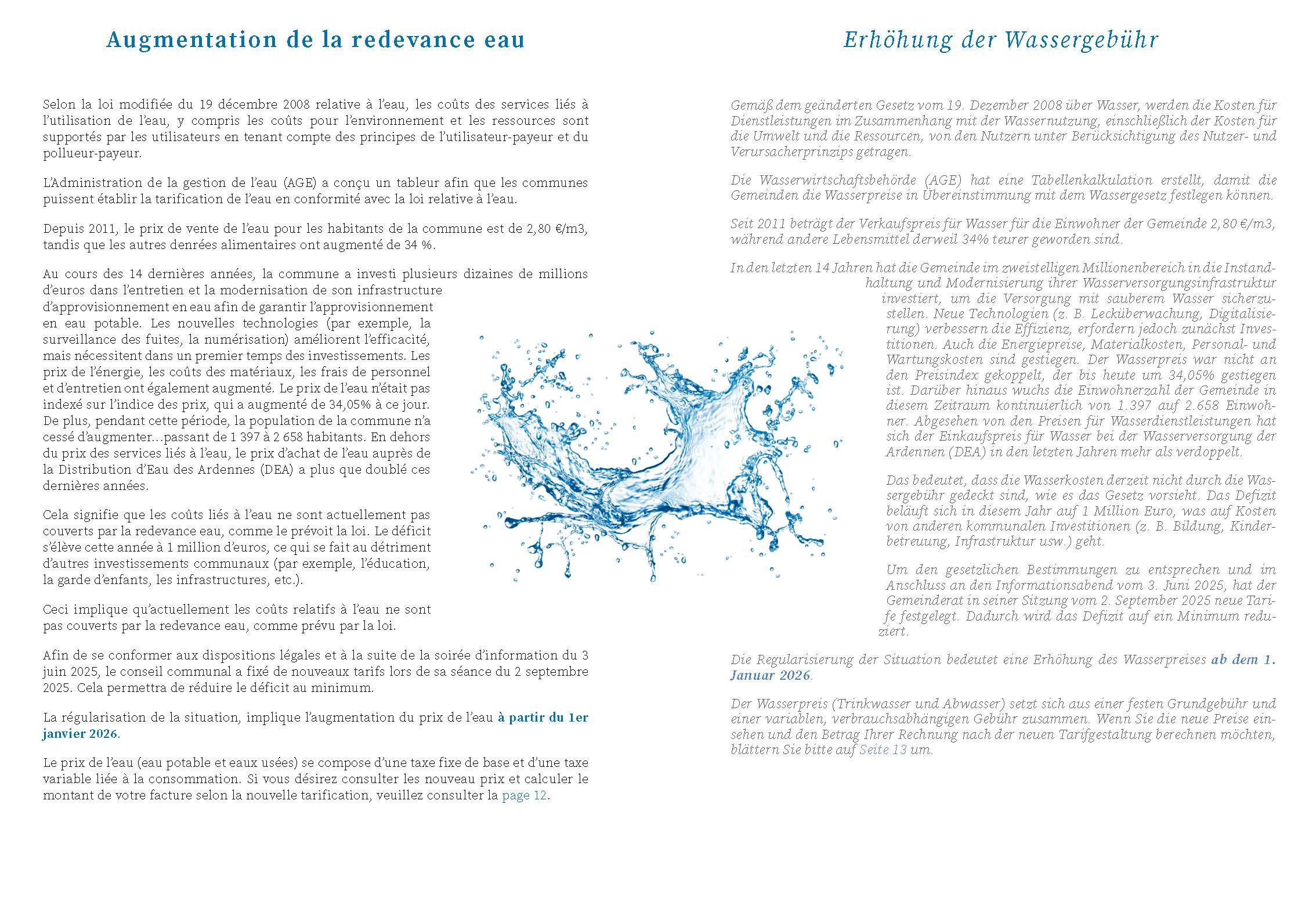 Afin d'être conforme aux dispositions légales et à la suite de la soirée d’information du 3 juin 2025, le conseil communal a fixé des nouveaux tarifs lors de sa réunion du 2 septembre 2025.
