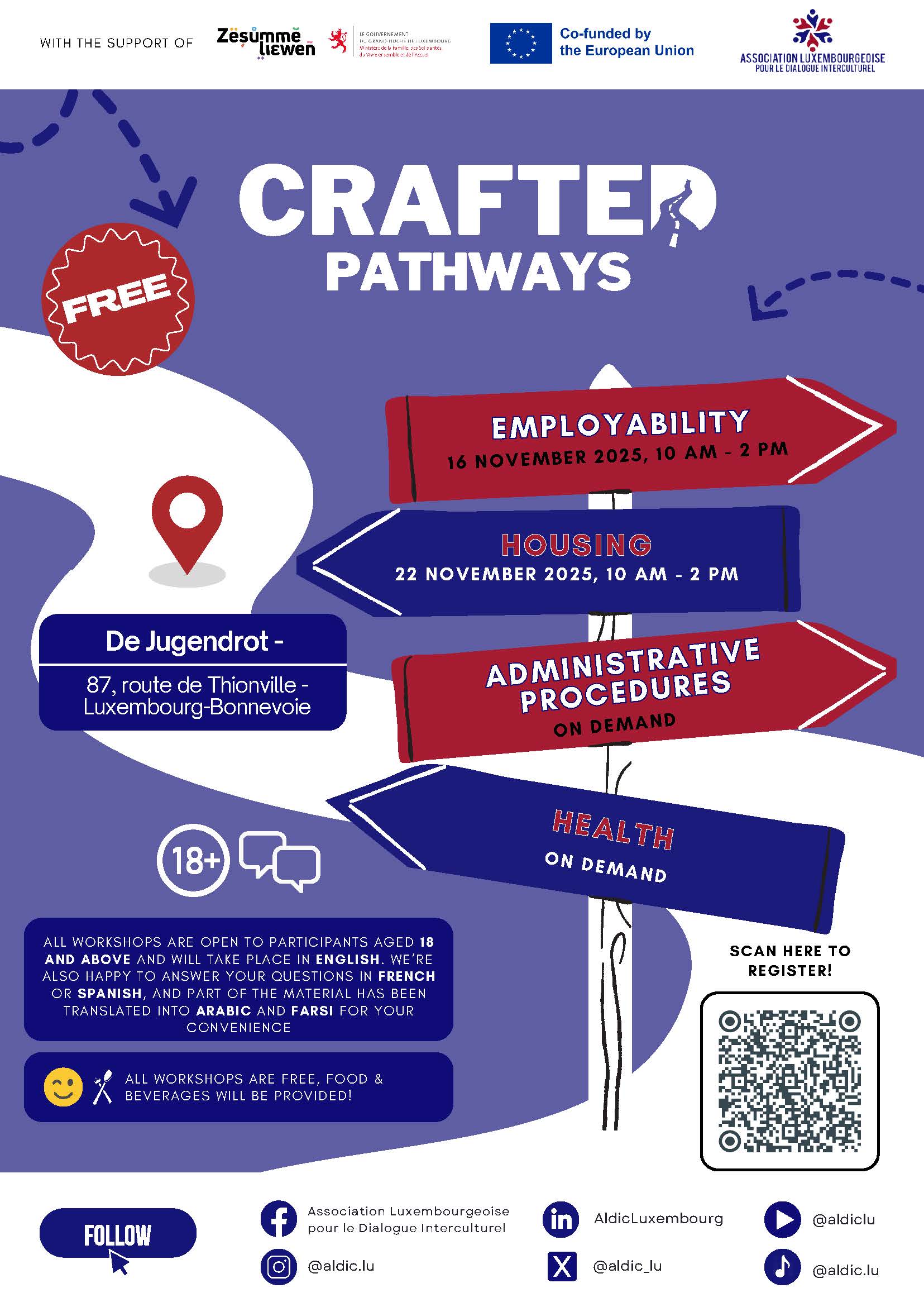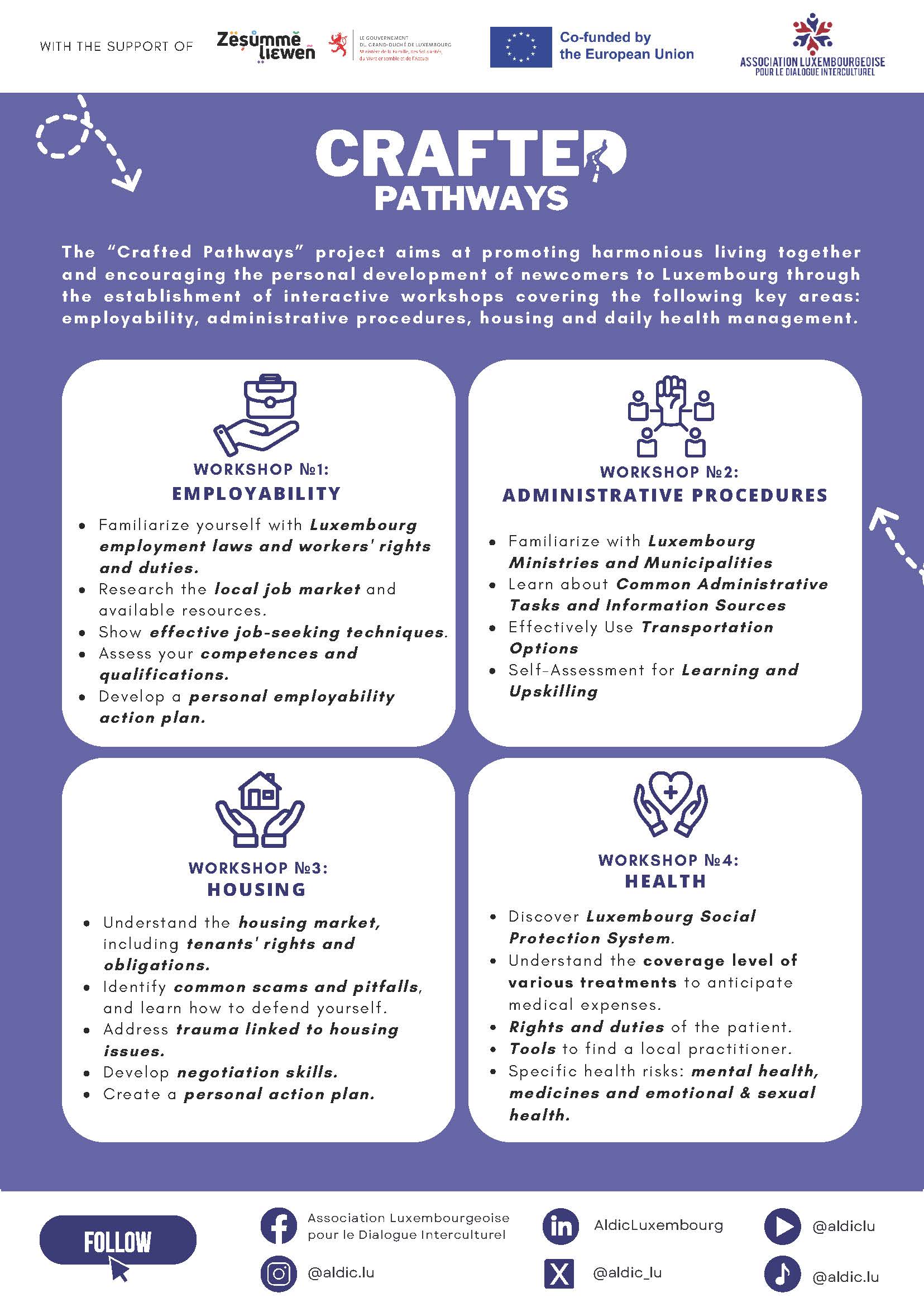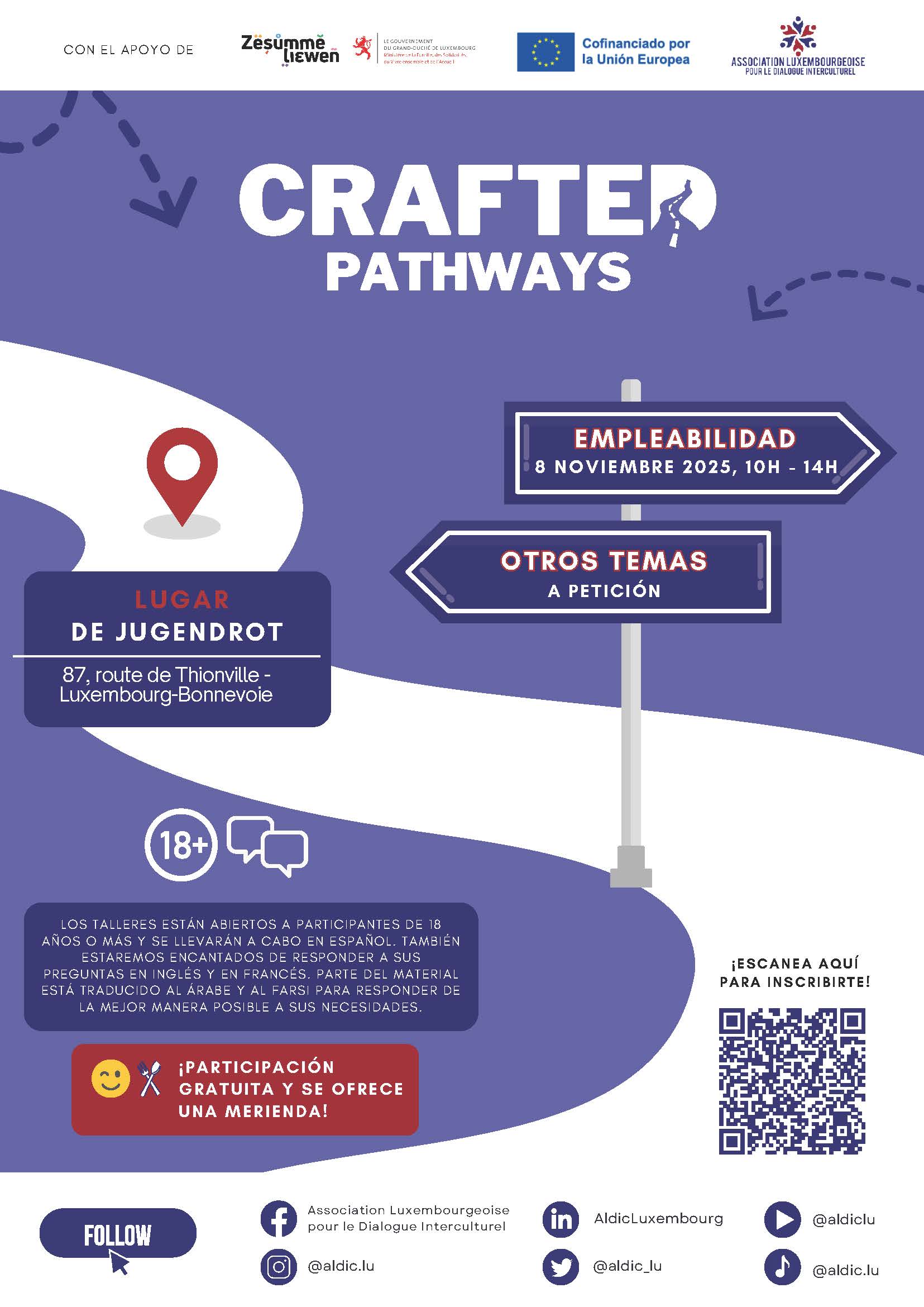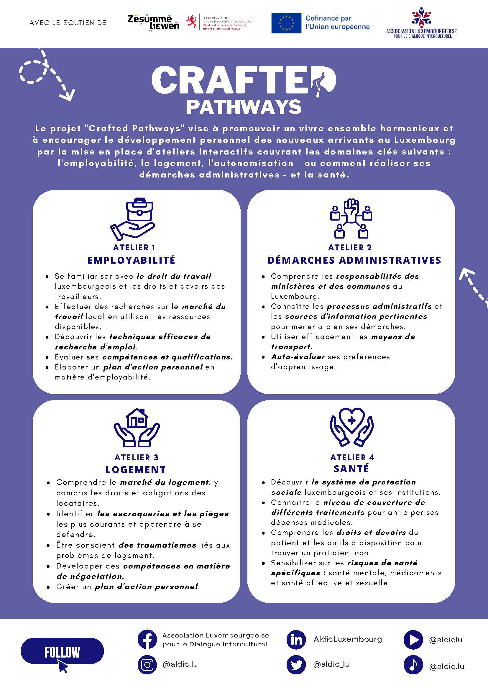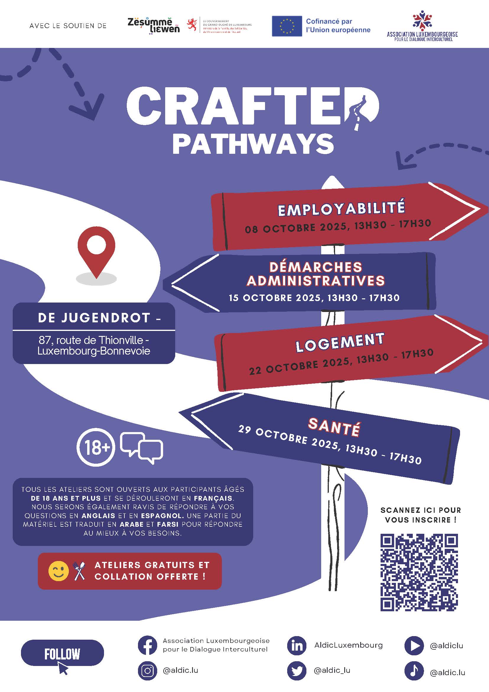 News Crafted Pathways 2025 09/10/2025 09/10/2025 Crafted Pathways Actualité Affiche Veuillez vous inscrire ici Crafted Pathways - PDF 2025 Dépliant reprenant toutes les informations concernant le projet "Crafted Pathways" pour l'année 2025