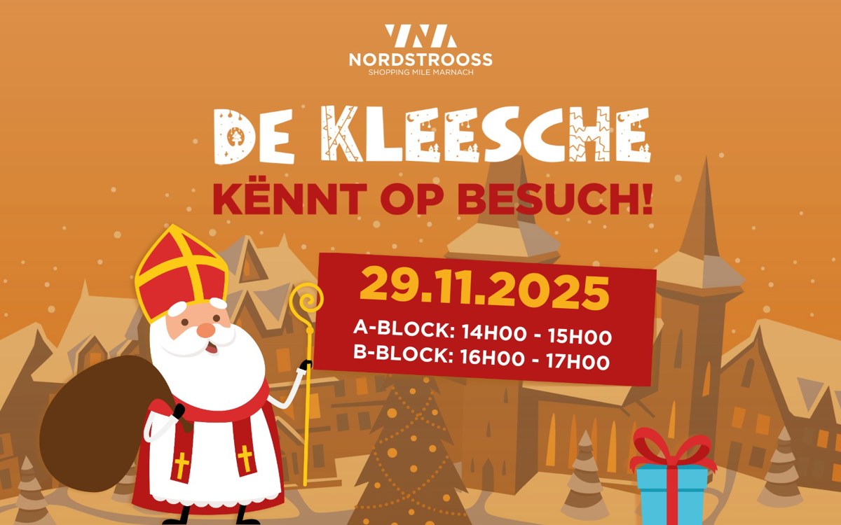 .Am Samstag, den 29. November 2025, besucht uns der Nikolaus in der Nordstrooss und verteilt kleine Tütchen an jedes Kind