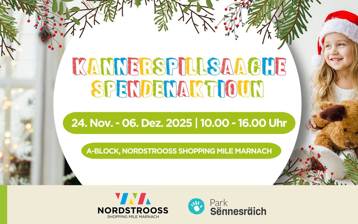 Vom 24. November bis zum 6. Dezember 2025 findet unsere 5. Edition der Kinderspielsachen Sammel- und Spendenaktion in Kooperation mit dem Park Sënnesräich statt.