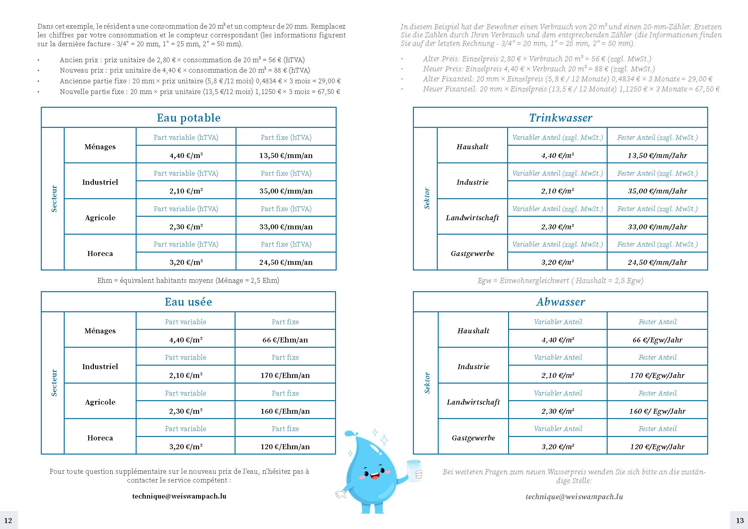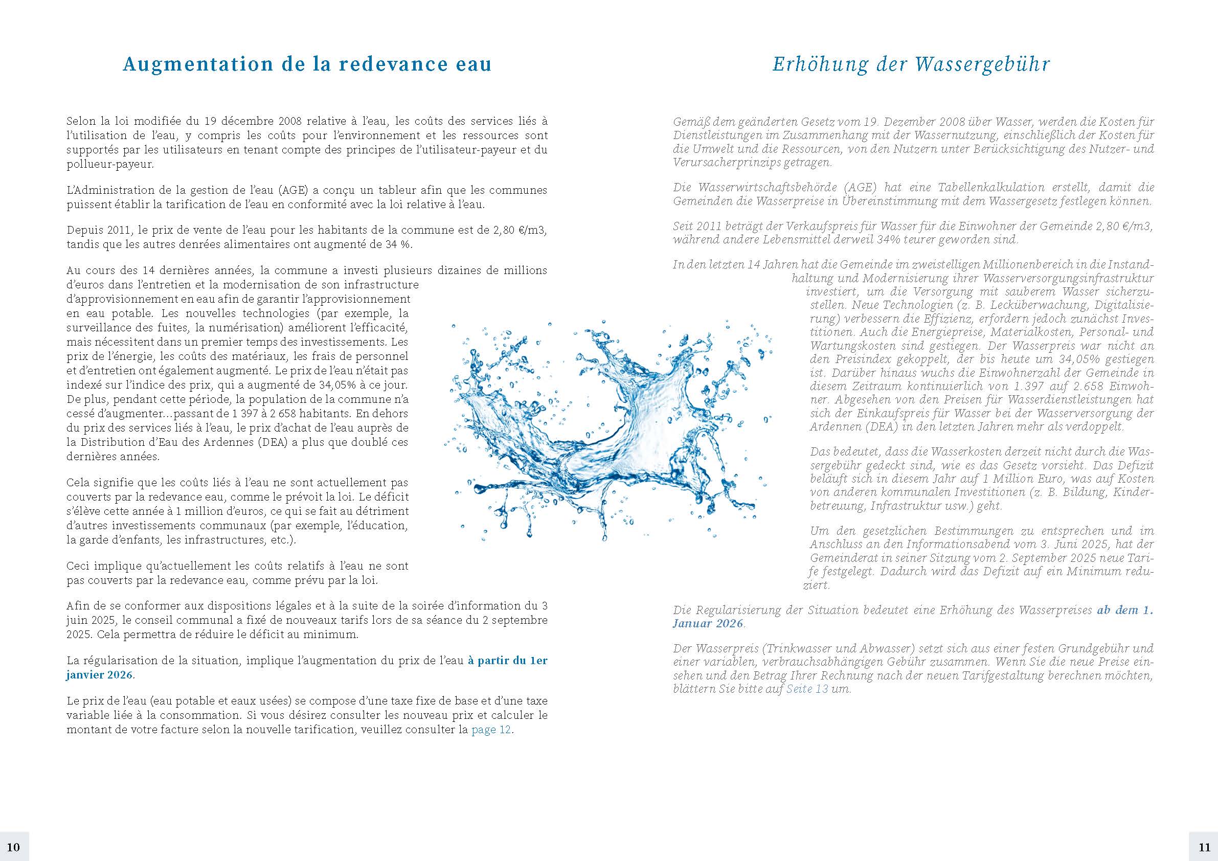 À la fin de l'année de calendrier, le service eau est chargé de la lecture des compteurs d'eau en vue de la facturation de votre consommation d'eau.
